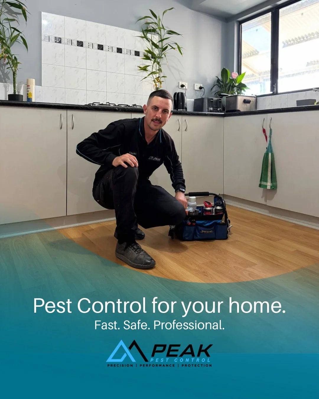 Clear benches and floors in the areas you want treated (especially kitchen, laundry and bathrooms).
